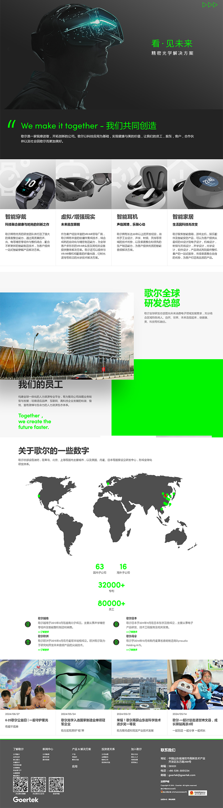 歌尔是一家锐意进取,开拓创新的公司。歌尔以科技应用为基础,实现健康与美的价值,让我们的员工,股东,客户,合作伙伴以及社会因歌尔而更加美好。